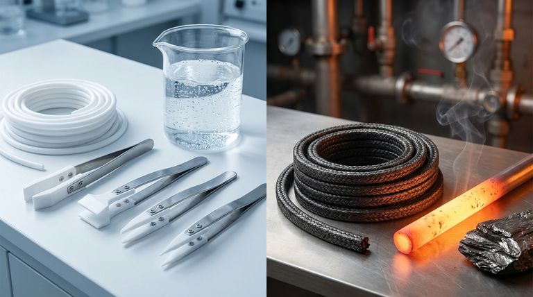 Фундаментальное различие между уплотнениями из ПТФЭ и графита заключается в их материальном составе и происхождении. Графит — это природная, стабильная форма чистого углерода, тогда как ПТФЭ (политетрафторэтилен) — это синтетический фторполимер. Это основное различие определяет все остальные эксплуатационные характеристики, от химической стойкости и трения до механической прочности и тепловых свойств.